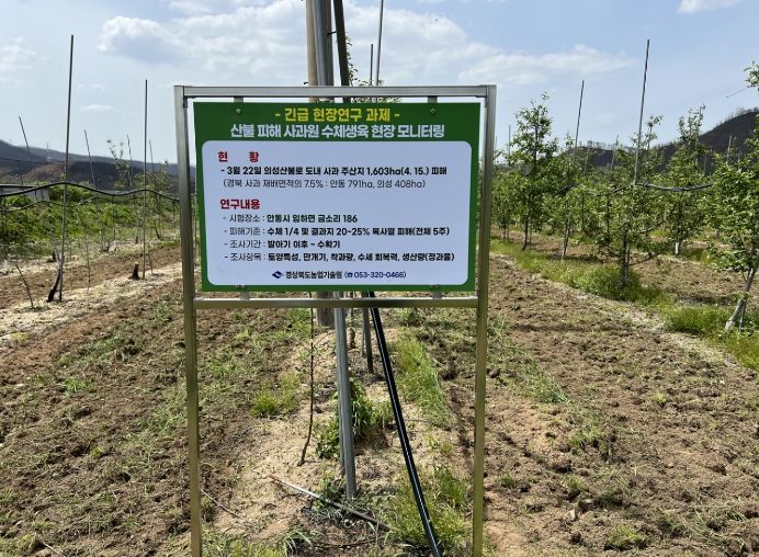 조영숙 경상북도농업기술원장은 “이번 조사는 산불 피해 사과원의 회복 가능성을 과학적으로 분석하고, 농가에 실질적인 관리 기준을 제시했다는 점에서 의미가 크다”며 “앞으로도 산불 피해 사과원의 조기 회복을 위해 현장 중심의 기술 지원과 맞춤형 지도를 지속적으로 강화해 나가겠다”고 밝혔다.