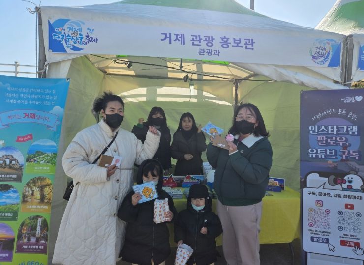 행사 기간 동안 관광안내지도 등 홍보물을 배부하고, 특히 관광객을 대상으로 거제시 공식 유튜브 구독 및 인스타그램 팔로우 인증 시 관광기념품을 제공하는 이벤트를 실시해, 현장 참여를 유도하고 관광 콘텐츠의 온라인 확산 효과를 높이는 성과를 거뒀다.
