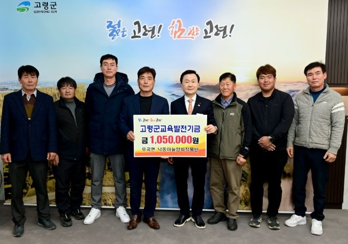 이날 기탁식에 참석한 우곡면 낙동마늘양파작목반 반장 박영호는 “미래를 이끌어 나갈 인재를 육성하는 것이 무엇보다 중요하다고 생각한다.”며 “고령군 학생들을 위해 사용해달라.”고 말했다.