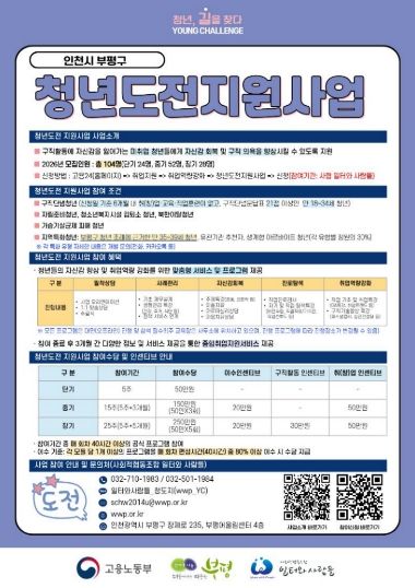 한방통신사 신유철기자 기자 | 부평구는 오는 10월까지 구직에 어려움을 겪고 있는 지역 청년들의 사회 재진입을 돕기 위한 ‘2026년 청년도전지원사업’ 참여자를 모집한다고 밝혔다.
