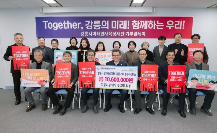 (재)강릉시미래인재육성재단은 지난 민선 8기 기간(2022년 7월 1일~ 2025년 12월 31일) 중 공로연수에 들어가거나 퇴직한 국·과장급 공무원 36명이 지역 인재 양성을 위해 써달라며 장학금 1,060만 원을 기탁했다고 밝혔다.