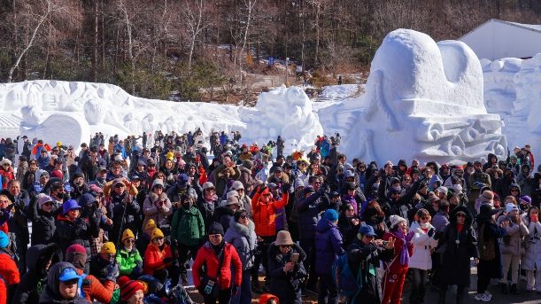 당골광장 ‘스노우 랜드’에는 2026년 병오년(丙午年)을 상징하는 ‘붉은 말’ 게이트를 비롯해 한국의 문화유산과 음식을 주제로 한 눈조각이 설치돼 관람객들의 호응을 얻었다.