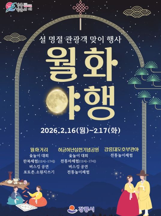 한방통신사 양호선기자 기자 | 강릉시는 설 명절을 맞아 고향을 찾는 귀성객과 관광객들에게 풍성한 볼거리와 즐길거리를 제공하기 위해 오는 16일부터 17일까지 양일간 설 맞이 행사'월화야행'을 개최한다.