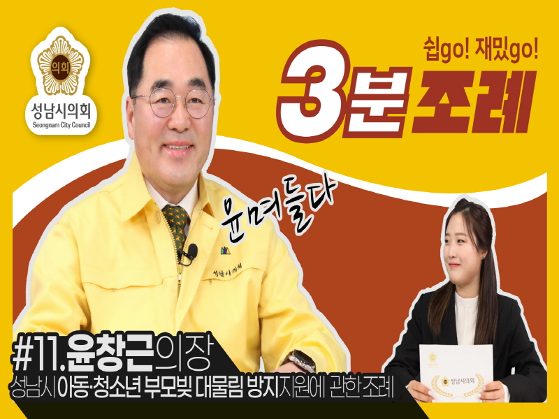 성남시의회(의장 윤창근)는 17일 ‘성남시의회 3분 조례’ 열한 번째 영상을 SNS에 게시했다.