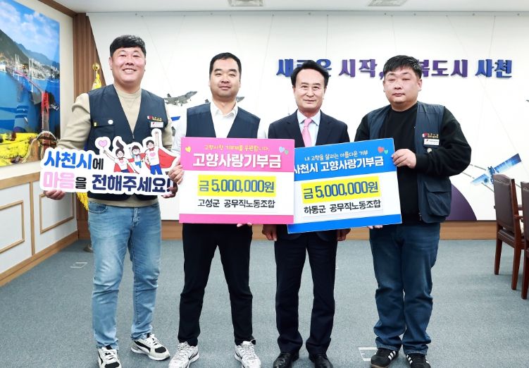 조현찬 사천시지부장은 “서로의 발전을 응원하는 마음이 3년 연속 고향사랑 상호기부에 참여하게 되는 원동력이라고 생각한다. 앞으로도 지속적인 교류를 통한 지역 상생 활동에 적극적으로 참여하겠다.”고 말했다.
