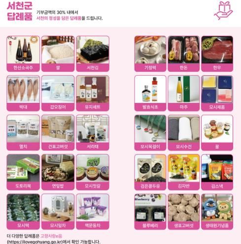 한방통신사 신태공 기자 | 서천군이 고향사랑기부제 기부자들에게 제공할 차별화된 답례품을 발굴하고 지역경제에 활력을 불어넣기 위해 ‘고향사랑기부제 답례품 공급업체’를 공개 모집한다.