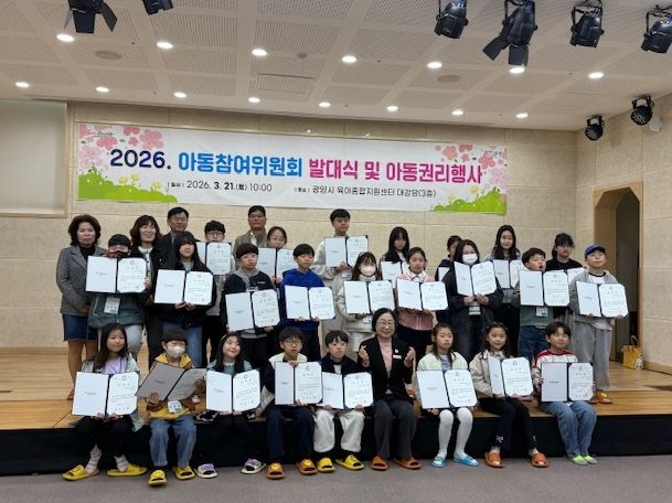 한방통신사 신다은기자 기자 | 광양시는 지난 3월 21일 광양시 육아종합지원센터 3층 대강당에서 '2026년 광양시 아동참여위원회 발대식 및 오리엔테이션'을 열었다고 밝혔다.