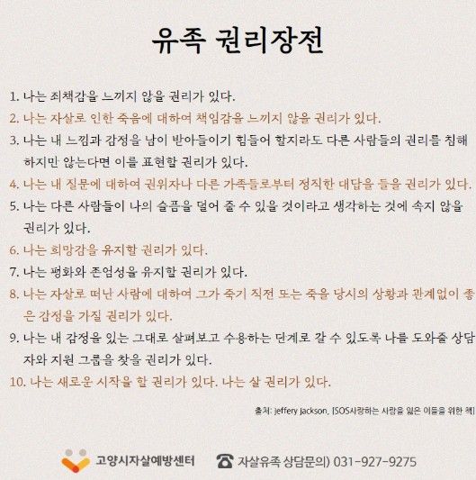 또 해당 유족은 일반인과 비교해 자살 사고 발생 위험이 6배 이상 높은 것으로 알려져 지속적인 심리적 지원이 필요한 상황이다.