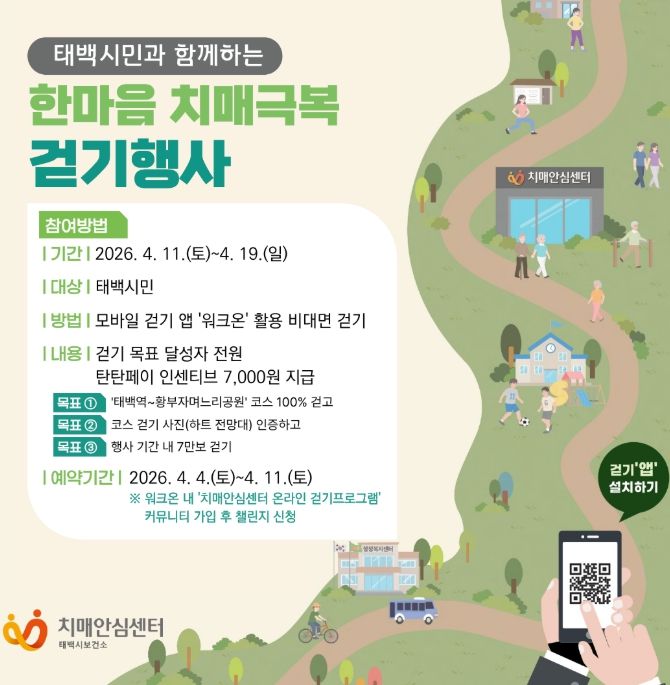 한방통신사 양호선기자 기자 | 태백시는 치매에 대한 인식 개선과 치매친화적 환경 조성을 위해 ‘2026년 한마음 치매극복 걷기행사’를 비대면 방식으로 운영한다고 밝혔다.