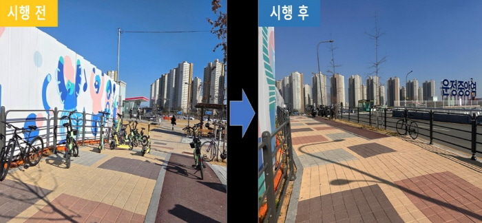 이에 파주시는 운정중앙역 일대 지정주차제 시행구역 내 노면 주차구역을 설치하고, 대여업체와 협력해 스마트폰 앱상 주차금지구역을 설정하는 등 이용자의 올바른 반납 문화를 유도하고, 지정주차구역 외 반납된 기기에 대해서는 즉시 견인을 시행했다.