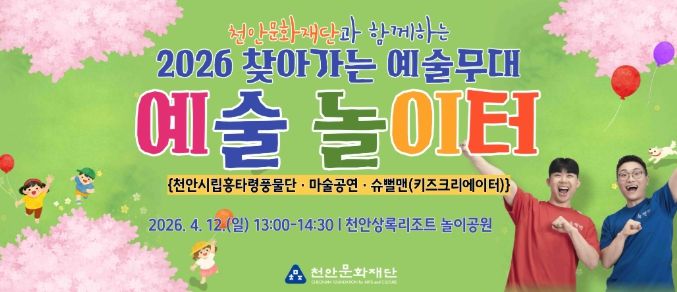 한방통신사 신태공 기자 | 천안문화재단은 오는 12일 천안상록리조트 놀이공원 일원에서 ‘예술놀이터’를 운영한다고 7일 밝혔다.
