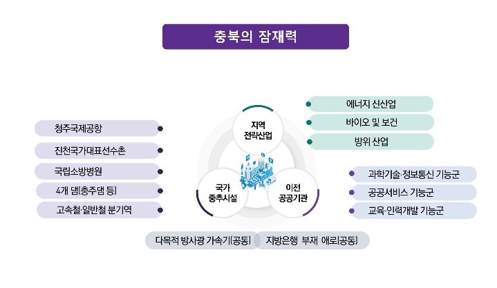 또한 전국 혁신도시 가운데 지리적으로 중심에 위치해 수도권과 지방을 연결하는 전략적 거점 역할이 가능하고, 공공기관 이전이 가능한 부지를 다수 확보하고 있어 신속한 이전 추진이 가능한 여건을 갖추고 있다.