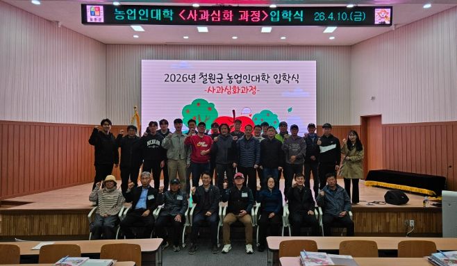 한방통신사 양호선기자 기자 | 철원군농업기술센터는 4월 10일 오후 2시 철원군농업기술센터 농업인교육관에서 제18기 철원군 농업인대학 사과심화과정 입학식을 개최했다.