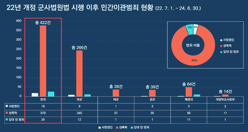 - 사망의 원인이 되는 범죄 18건, 성폭력 범죄 378건, 입대 전 범죄 26건