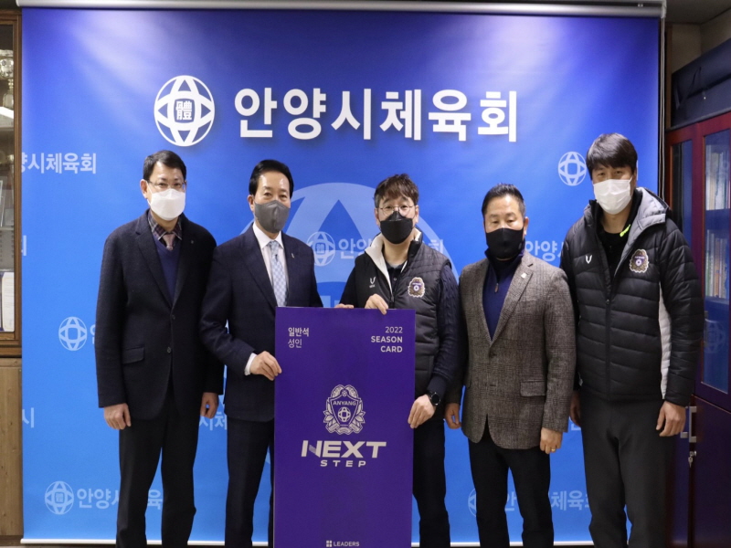 지난 18일(금) 오후, 안양시 체육회 박귀종 회장, 임준 사무국장을 비롯한 임직원들이 2022 FC안양 연간회원권을 구매하고 선수단의 선전을 기원했다. 안양시 체육회 박귀종 회장은 “올해 1부리그 승격을 목표로 하고 있는 FC안양 선수들의 선전을 안양시 체육회가 한 가족으로서 응원하겠다”고 말했다.