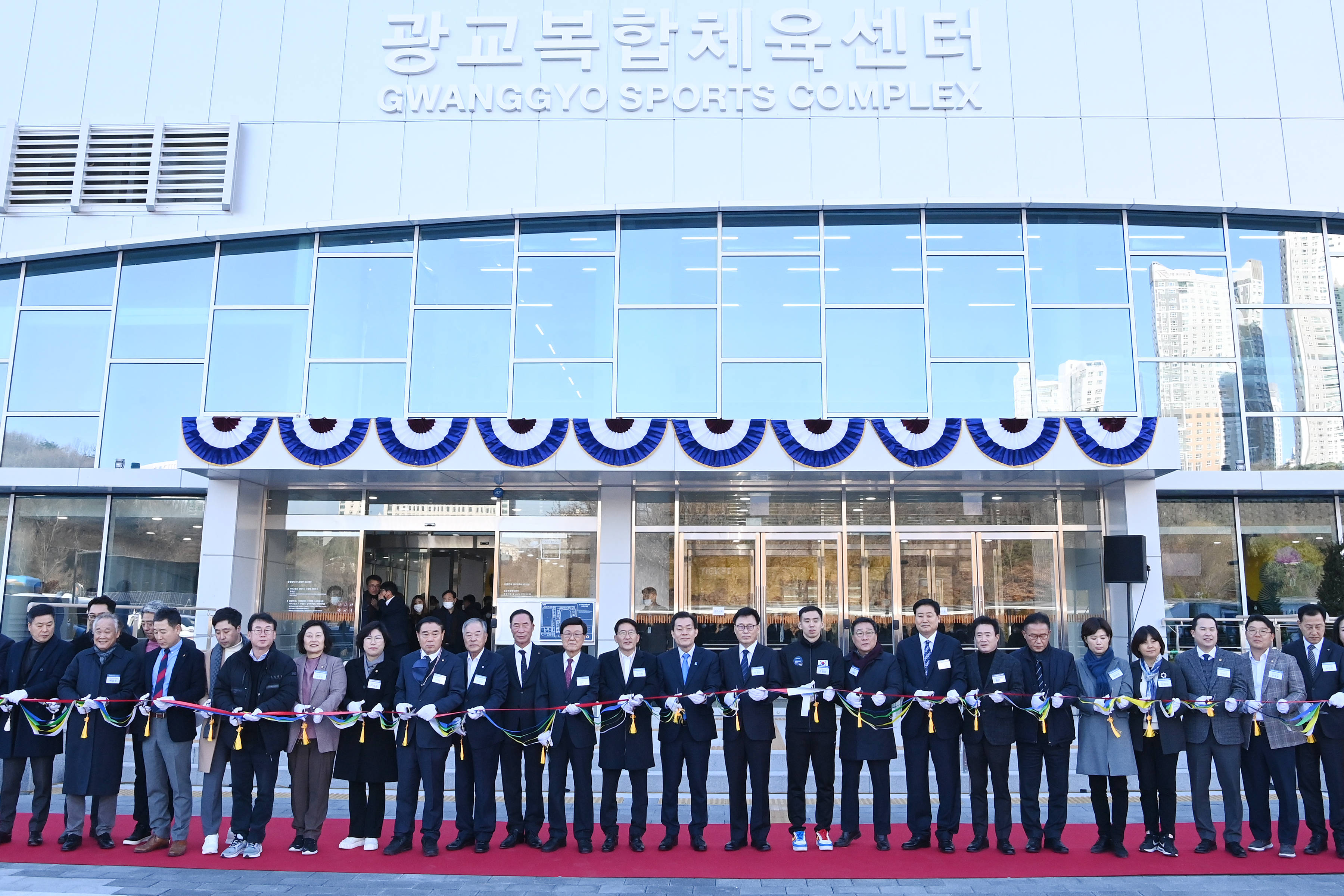 광교호수공원 내(영통구 광교호수로 165 일원)에 건립된 광교복합체육센터는 연면적 1만 2652.55㎡, 지하 1층·지상 2층 규모다. 2018년 3월 착공해 2022년 9월 준공했다. 광교개발이익금 500억 원과 시비 50억 원 등 총 550억 원을 투입했다.
