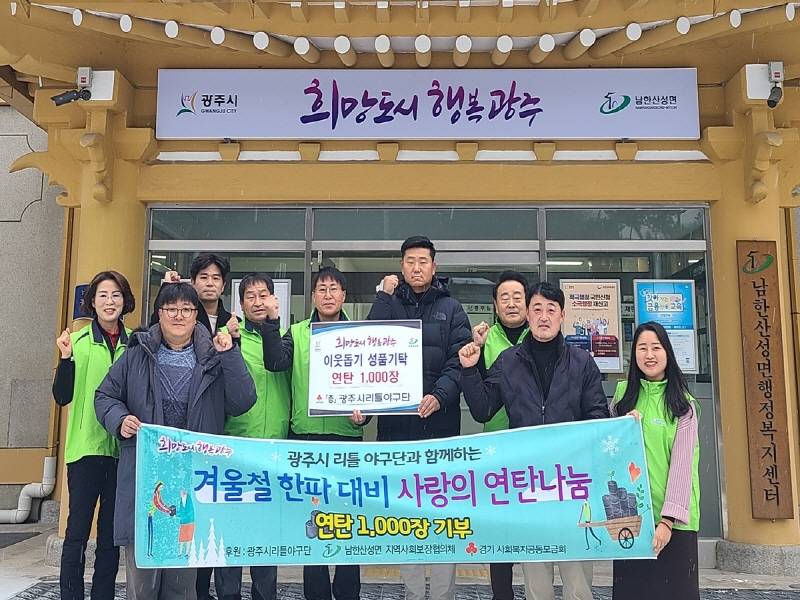 광주시 리틀야구단은 6일 광주시 남한산성면 행정복지센터를 방문해 이웃을 위한 사랑의 연탄 1천장을 기탁했다.
