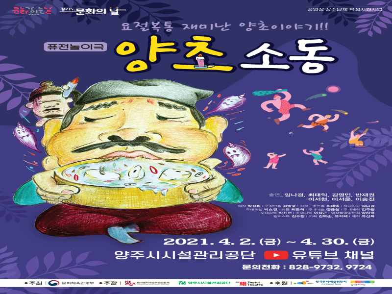 양주시시설관리공단은 오는 4월 2일(금)부터 4월 30일(금)까지 문화가 있는 날 및 경기도 문화의 날을 맞아 어린이 공연 “양초소동”을 온라인 공연으로 선보일 예정이다.