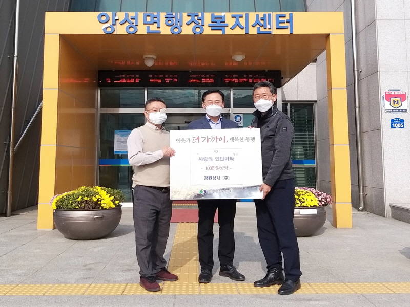 이정우 앙성면장은 “코로나19 장기화로 모두가 힘들고 어려운 시기에 이웃을 위한 온정의 손길을 보내주신 경원상사(주)에 감사드린다”며 “앞으로도 복지 사각지대 해소를 위해 최선을 다하겠다”고 말했다.