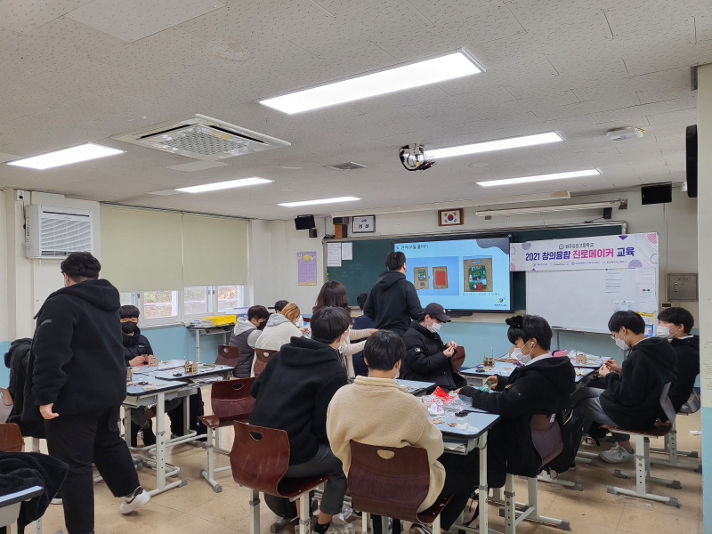 코로나19로 침체한 학교 분위기를 전환하고 창의융합 메이커 체험을 통해 격변하는 미래사회에 적응할 수 있도록 진행됐다.