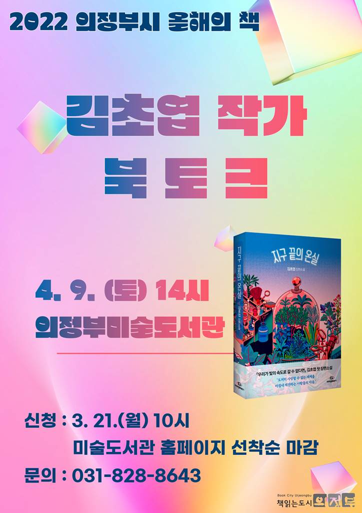 의정부시(시장 안병용)는 4월 9일 한 도시, 한 책 읽기 사업의 일환으로 성인 분야 올해의 책 김초엽 작가 북토크 행사를 의정부미술도서관에서 개최한다.성인 분야 올해의 책 「지구 끝의 온실(작가 김초엽)」은 멸종 이후 재건된 시대, 지구 재건에 숨겨진 사람들의 온기 어린 이야기를 다룬 책으로, 역대 의정부시 올해의 책 중 최초로 선정된 SF장르의 도서이다.