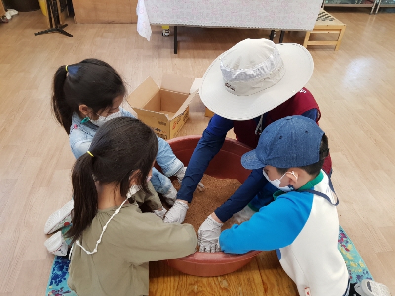 문원행복마을관리소는 관내 대안학교인 무지개학교를 찾아 학생 6명, 교직원 1명과 함께 EM을 섞어 흙공 150여 개를 만든 뒤, 배랭이천에 던져넣었다. EM흙공에 들어있는 미생물은 하천의 오니층(슬러지)을 분해하며 수질정화에 도움을 주게 된다.