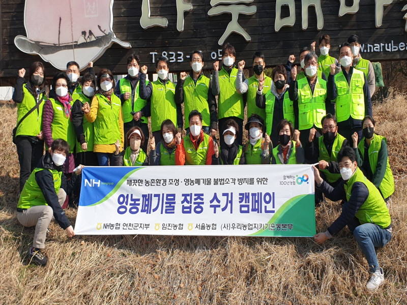 이날 봉사활동에는 농협 및 우리농업지키기운동본부 임직원 30여명이 참여하여 농촌에 방치된 폐비닐, 농약병 등 영농폐기물 수거에 힘썼다.