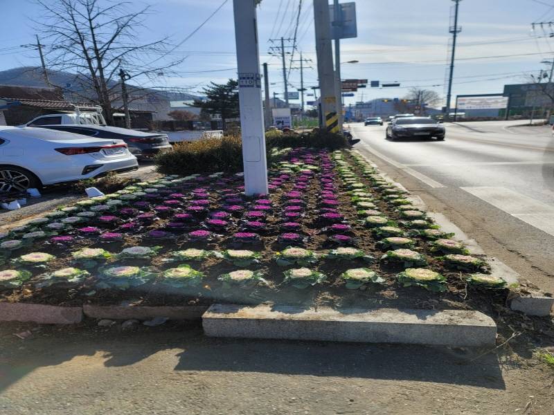 대상지는 진우1리, 유정1리 마을회관, 수도사 표지석 앞, 청사 주변 등 총 12개소이며 많은 시민이 오가며 볼 수 있는 곳에 꽃 양배추를 식재해 겨울내내 지역 주민들의 마음에 화사한 기운을 선사할 예정이다.