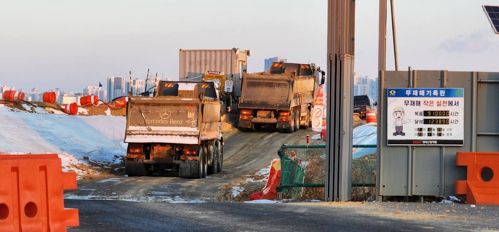 먼저 취재진은 지난 22일 새벽, 대형 트레일러와 작업 차량들이 특정 공사시간을 준수하지 않고 작업을 진행하고 있는 모습을 확인했다.
