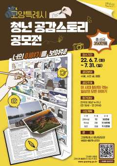 고양시가 청년의 다양한 이야기를 찾기 위해 ‘청년 공감스토리’ 공모전을 실시한다. 청년이라면 지역 상관없이 누구나 참가할 수 있으며 7월 31일까지 참가 신청‧접수받는다.고양시 청년 공감스토리 공모전은 청년의 성공과 실패, 꿈과 도전, 일상 속 이야기 등 이 시대 청년들의 공감 스토리를 발굴⋅공유하여 청년 이슈에 대한 공감대를 형성하고 청년의 발전을 응원하기 위해 ‘고양시 청년 기본 조례’에 따라 추진하는 공모사업이다.