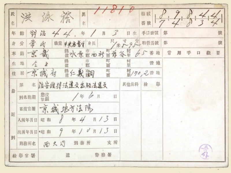홍운표는 1934년 조선공산당재건운동에 참여해 징역 1년 6개월을 받았고, 한인택·최석규는 경성농업학교 재학 중에 조선의 독립을 목표로 하는 ‘비밀결사 소척대’를 조직해 활동하다가 검거돼 퇴학·근신 처분을 받았다.