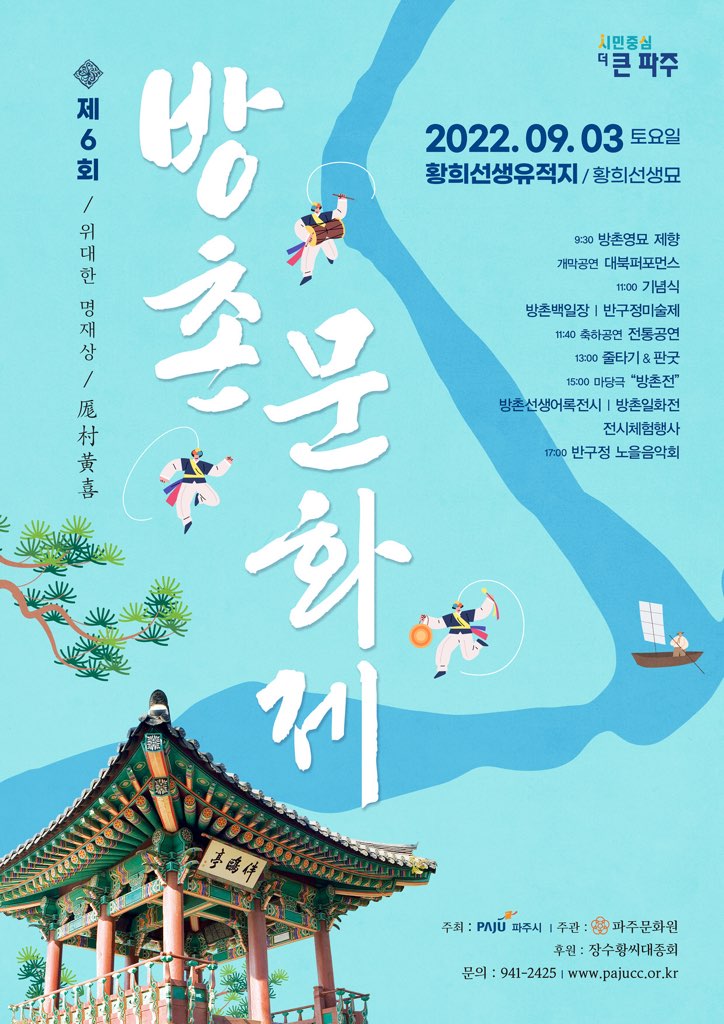 이귀순 문화예술과장은 황희선생 유적지에서 개최되는 방촌문화제를 통해 선생의 생애를 돌아보고 파주가 역사문화 자원이 풍부한 고장임을 널리 알리는 기회로 삼겠다고 말했다.