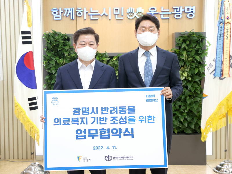 광명시(시장 박승원)는 11일 광명시 반려동물 의료복지 기반 조성을 위해 사단법인 한국스마트헬스케어협회(회장 심기준)와 업무협약을 체결했다.이번 협약을 통해 광명시와 한국스마트헬스케어협회는 진료서비스 통합 정보관리 시스템을 개발해 동물병원마다 상이한 진료 데이터를 체계적이고 표준화된 플랫폼으로 통합하여 관리하고 관내 동물병원의 통합 시스템 적용과 사용을 도와 보급해 나가는데 협력해 나가기로 했다.