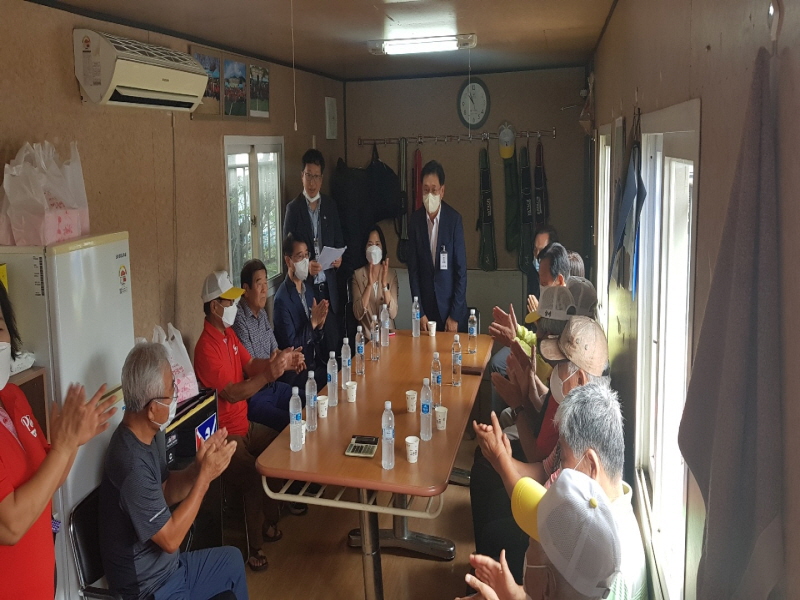 이종승 대표는 “무더운 날씨에 운동하시는 어르신들께 조금이나마 도움이 되면 좋겠다”며 지원금을 전달하고, 양서분회 그라운드 골프회 회원들을 응원했다.