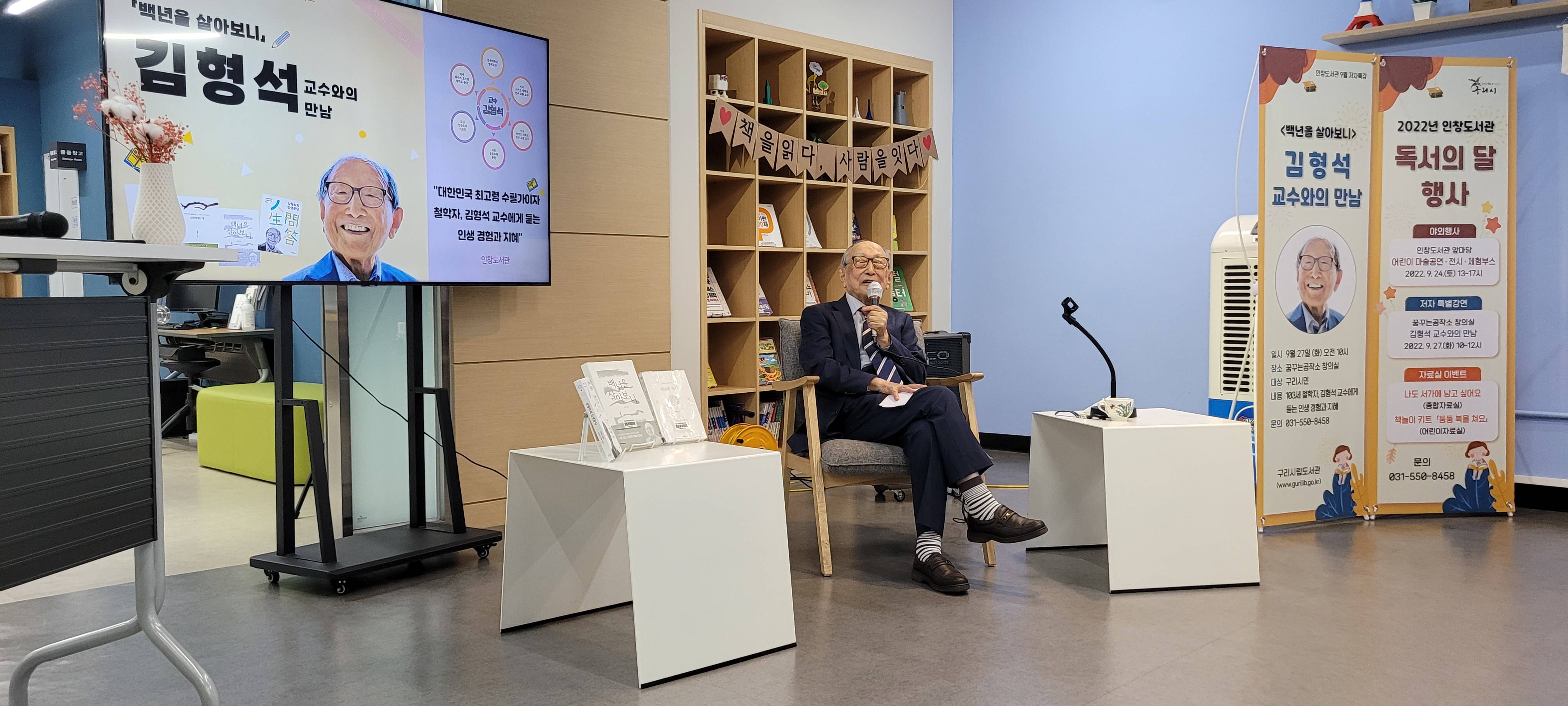 구리시(시장 백경현) 인창도서관에서는 독서의 달 9월을 맞아 27일 오전 10시부터 2시간 동안 철학자이자 수필가인 김형석 교수를 초청해 노 교수의 인생 경험과 지혜를 듣는 시간을 가졌다.