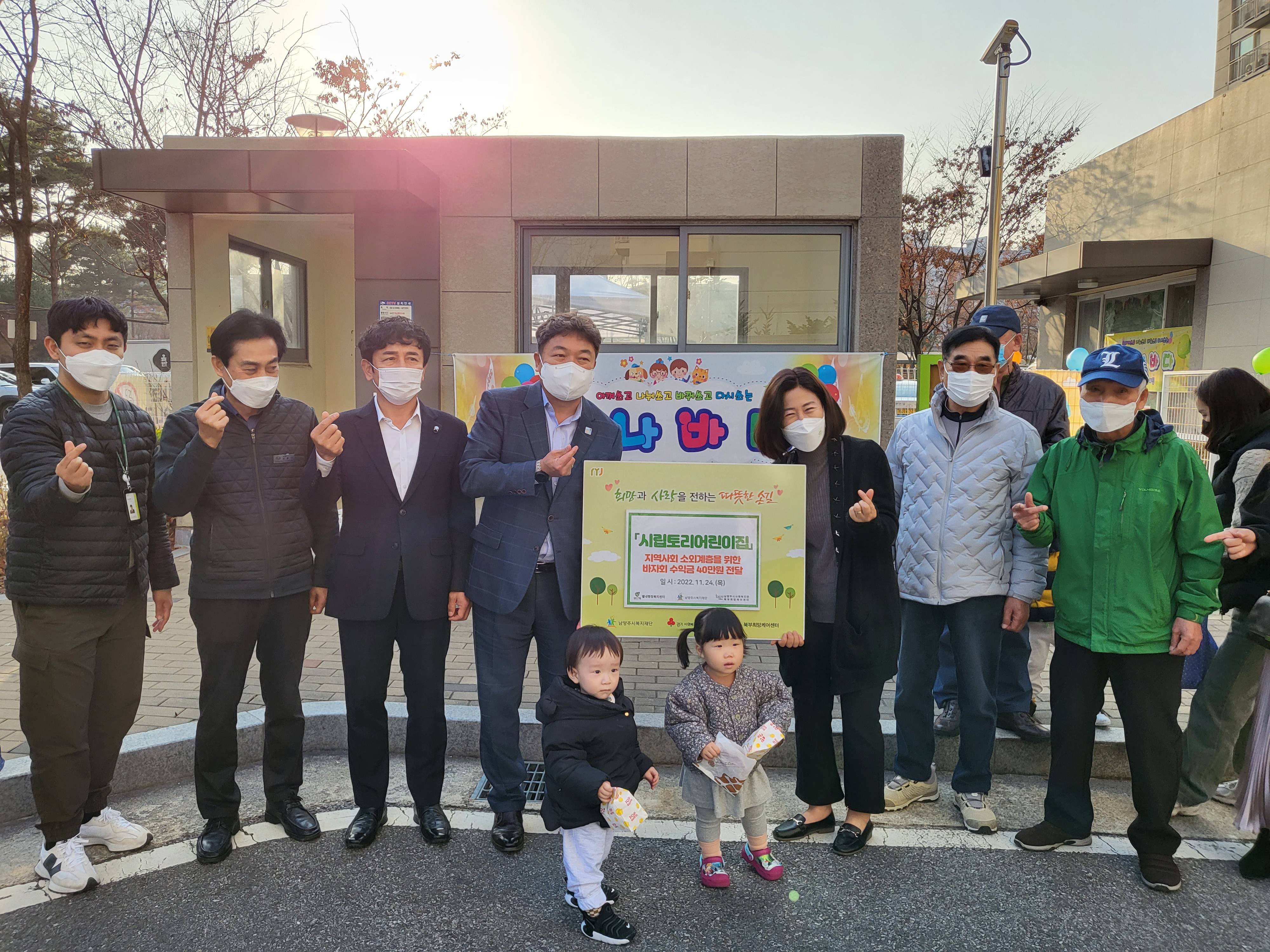 시립토리어린이집은 LH미리내마을 4-3 아파트 단지 내 소재한 어린이집으로 매년 교직원 및 학부모, 아이들과 함께 아나바다 시장놀이 체험활동을 실시해 마련한 수익금으로 지역사회를 위한 기부활동을 해왔으며, 기부금은 관내 어려운 이웃들을 위해 사용될 예정이다.