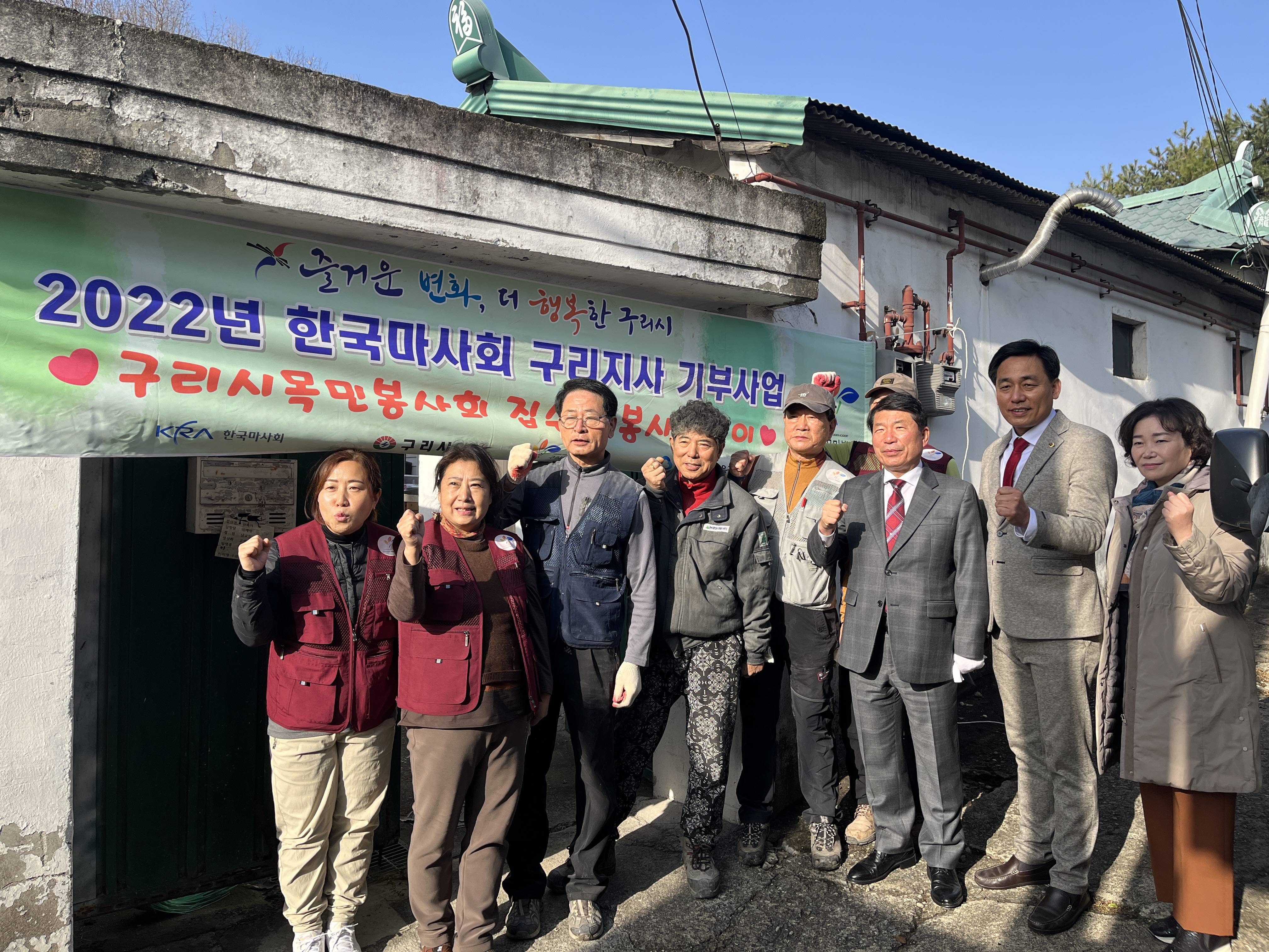 백경현 구리시장은 “추운 날씨에도 저소득층을 위한 집수리 봉사를 해주신 구리시 목민봉사회 윤재근 회장과 회원들을 비롯해 한국마사회 구리지사, 구리새마을금고 직원과 집수리 봉사에 참여해 구슬땀을 흘린 봉사자 여러분들에게 감사드린다.”고 전했다.