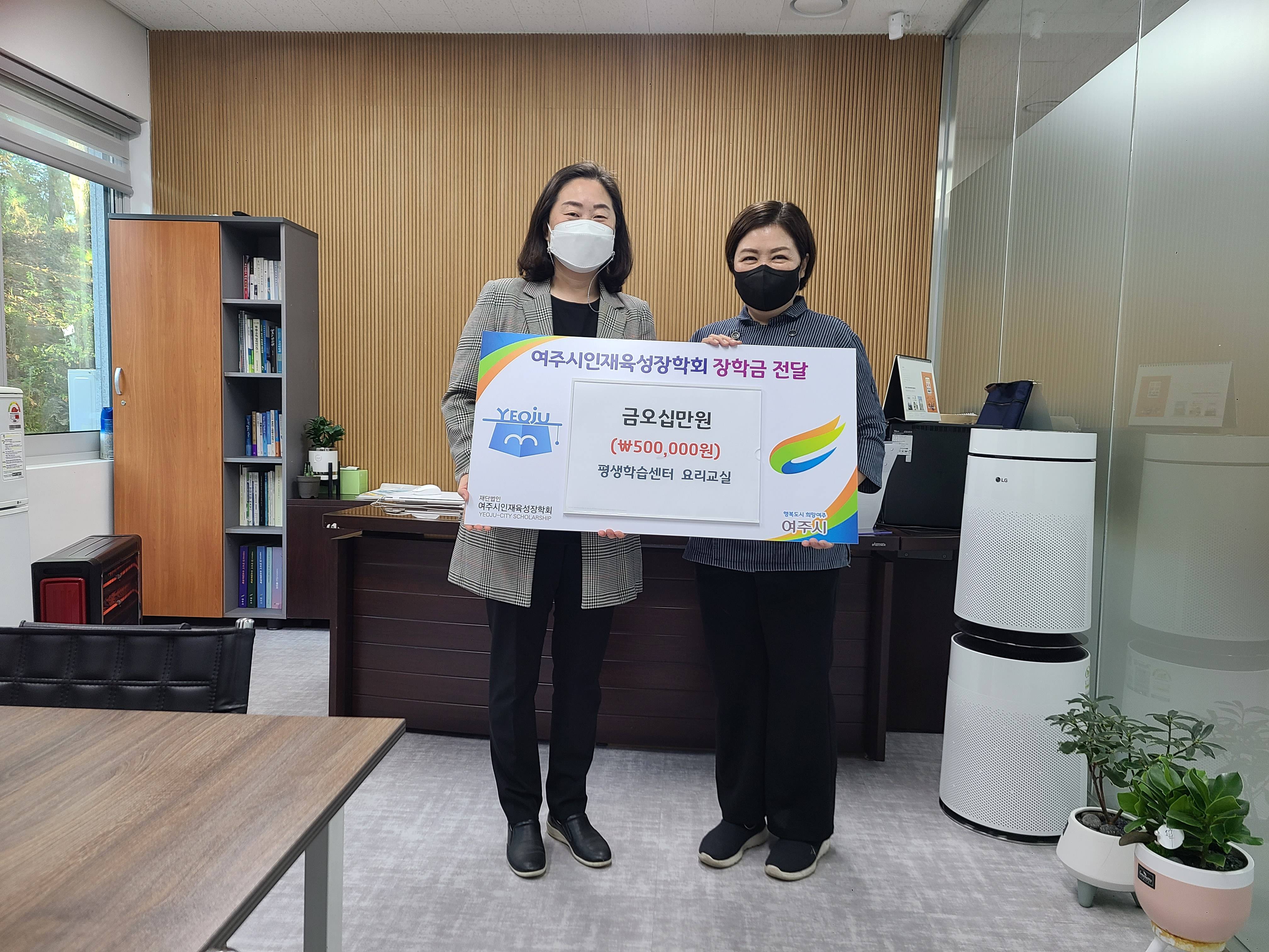 여주시 평생학습센터 요리 교실은 평생학습센터에서 (재)여주시인재육성장학회에 기부금 50만원을 전달했다.