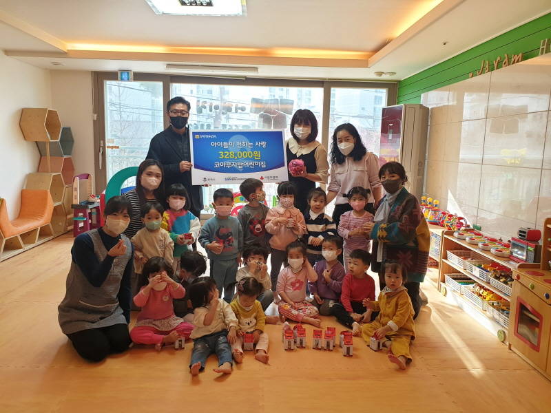 이번 기부금은 코아루자람어린이집에서 원아들과 함께한 바자회 수익금으로 마련되어 그 의미가 더 크다.