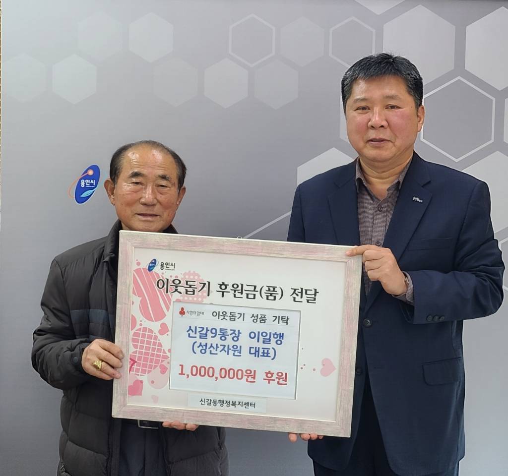용인특례시 기흥구 신갈동은 지난 1일 신갈9통장 이일행 씨가 취약계층을 돕는 일에 써달라며 성금 100만원을 기탁했다고 2일 밝혔다.