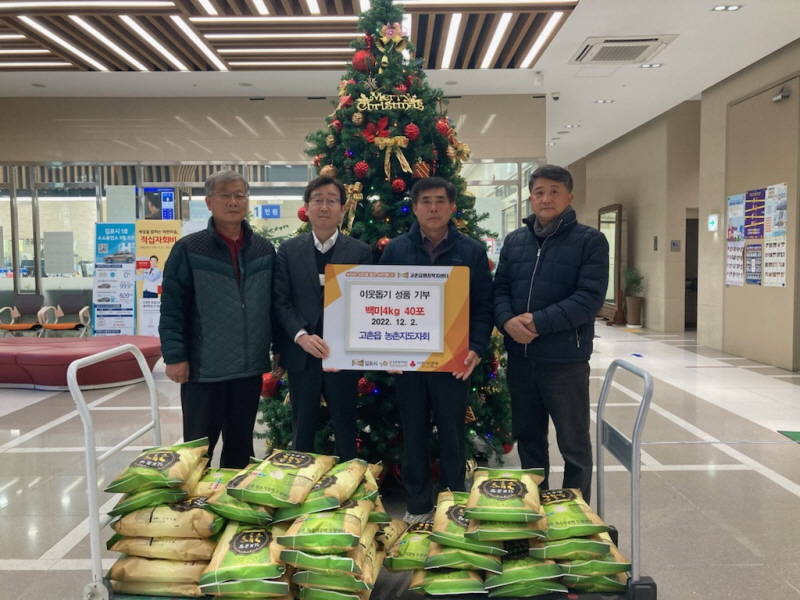 고촌읍 농촌지도자회(회장 김중근)는 지난 12월 2일 고촌읍(읍장 이창우)을 방문하여, 생활이 어려운 이웃들에게 전달해 달라며 따뜻한 온정이 가득 담긴 백미4kg 40포를 기부했다.