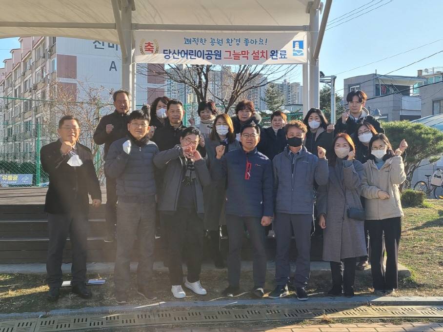 팔달구 우만1동 행정복지센터(동장 박근섭)은 우만1동 당산어린이공원(수원시 팔달구 세지로 436)에 그늘막 설치를 완료하였다고 밝혔다. 그늘막 공사는 10월부터 2개월간 진행되었으며 지난 11월28일 완공되어 지역 주민들이 햇빛과 비·눈을 피해 쉴 공간이 마련되었다.