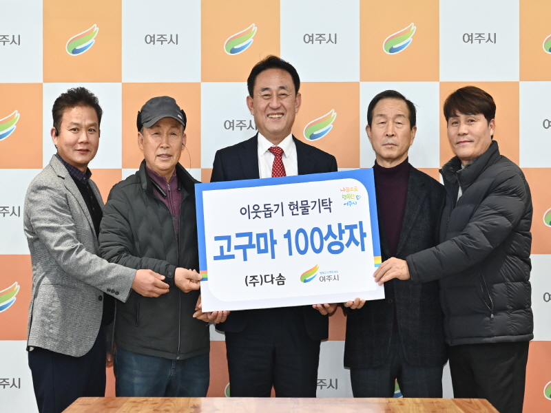 세종대왕면에 위치한 ㈜다솜에서 지난 12월 15일 여주시(시장 이충우)에 관내 취약계층을 위한 고구마 100상자를 기탁하고 16일 성금 303만원을 기탁하였다.