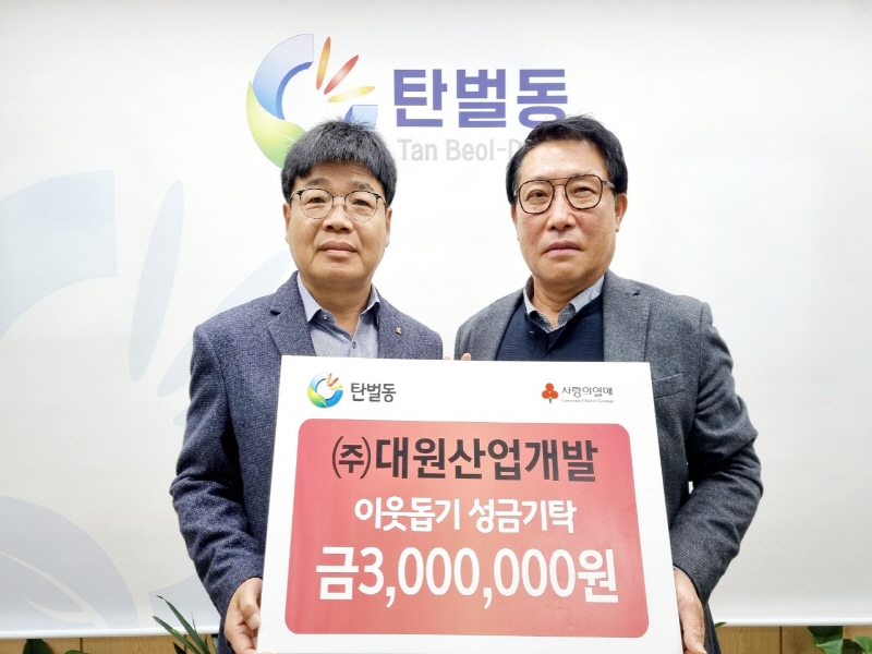 또한, 이 대표는 지난 19일 탄벌동 행정복지센터를 찾아 소외된 이웃을 돕기 위해 성금 300만원을 기탁했다.