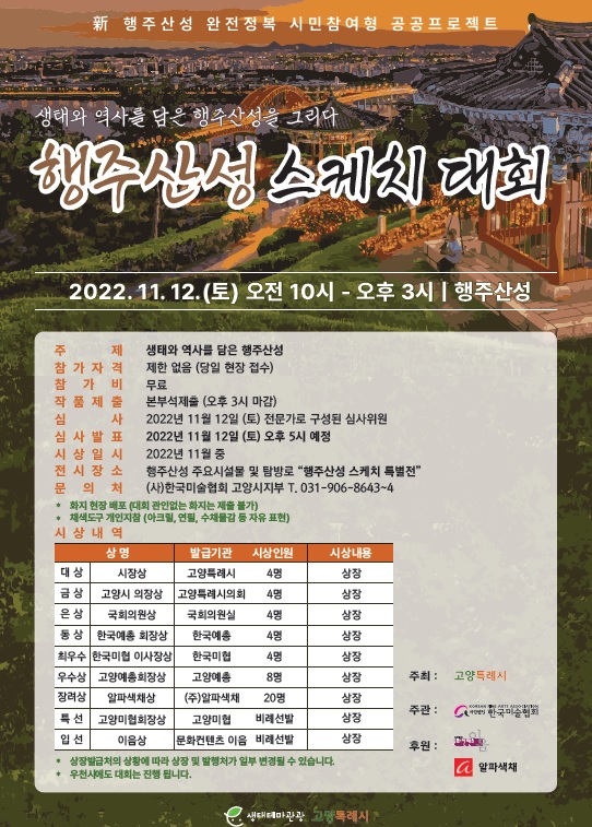 스케치 대회는 2022년 문화체육관광부의 생태녹색관광 활성화 공모에 선정된 「新행주산성 완전정복」의 일환으로 추진되는 참여형 공공프로젝트로, 고양시가 주최하고 한국미술협회 고양지부에서 주관한다.