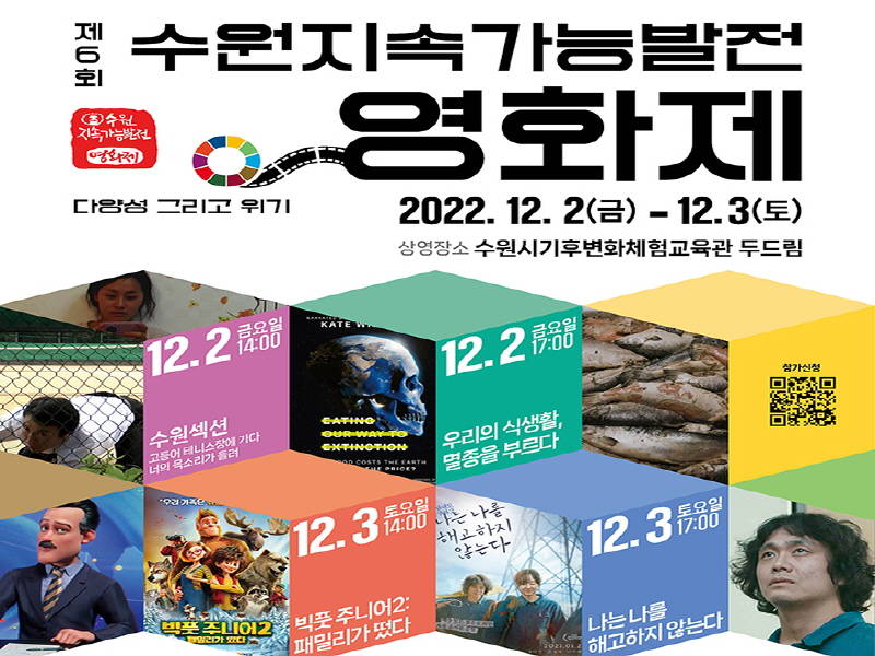 제6회 수원지속가능발전영화제가 12월 2~3일 수원시기후변화체험교육관 두드림에서 ‘다양성 그리고 위기’를 주제로 열린다.