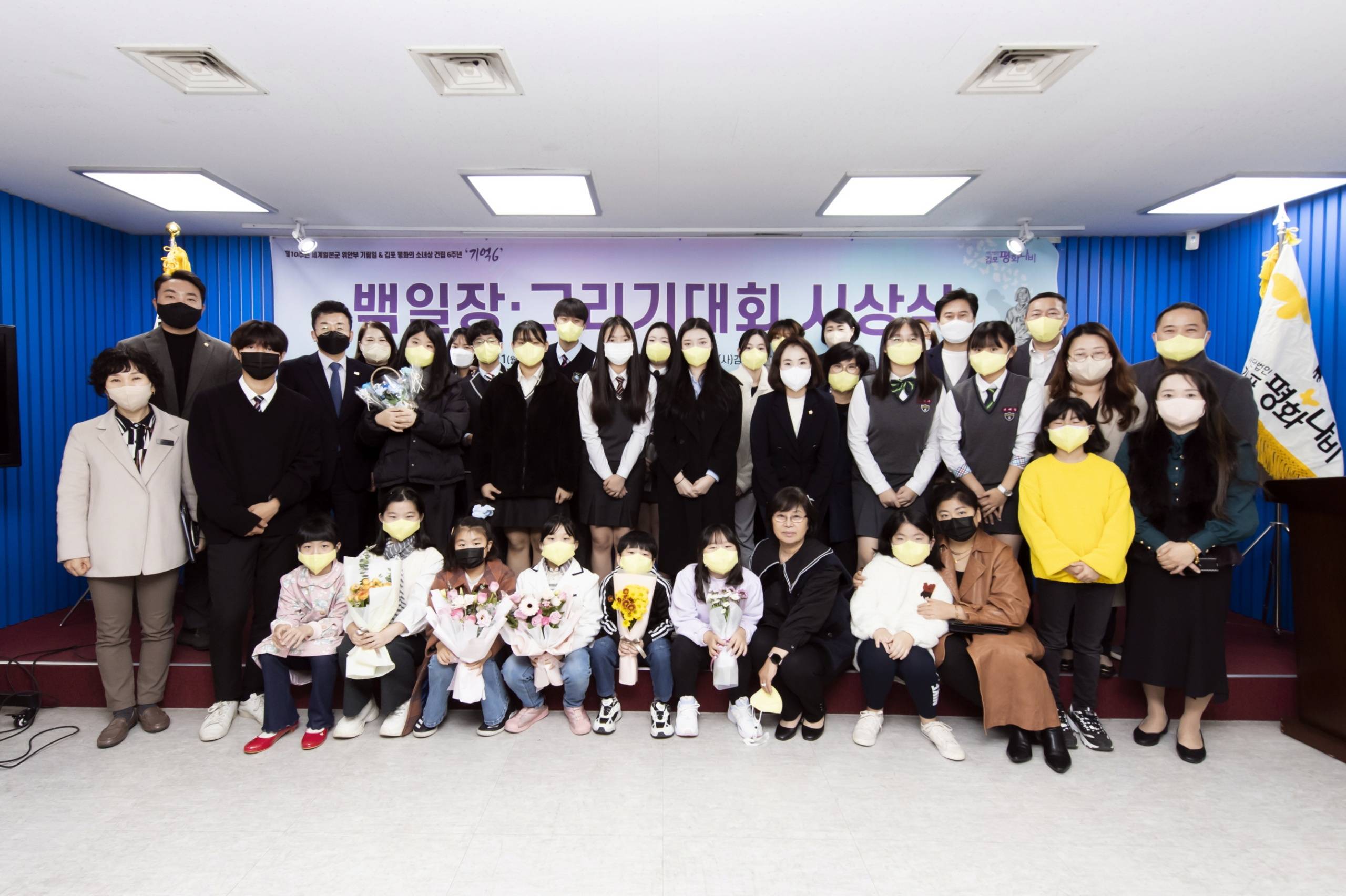 (사)김포평화나비(이사장 황순연)에서 주최한 김포 평화의 소녀상 건립 6주년 기념 학생백일장·그리기대회 우수작 시상식이 지난 21일 김포시의회 브리핑룸에서 개최됐다. 수상 작품은 총 26점으로, 김포시장상 5점, 국회의원상 10점, 시의장상 4점, 이사장상 7점이다.