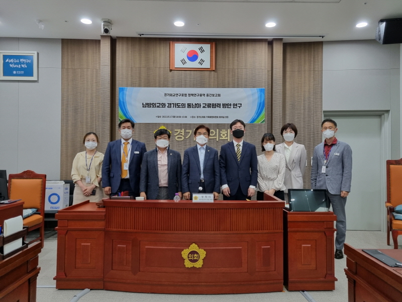 경기도의회 의원연구단체 「경기외교연구포럼」(회장 정희시 의원, 군포2, 더민주)은 17일(화) 도의회 기획재정위원회 회의실에서 ‘남방외교와 경기도의 동남아 교류협력 방안 연구’에 대한 연구용역 중간보고회를 개최했다.