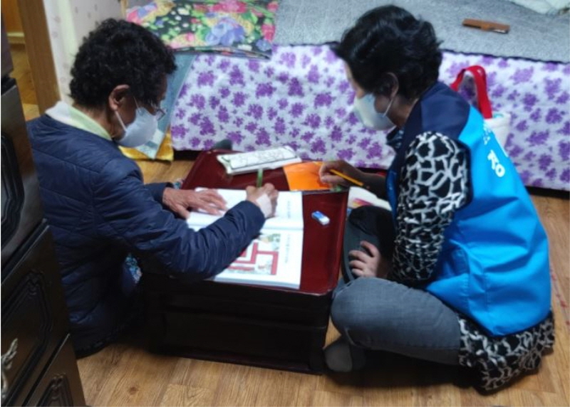 치매서포터는 혼자 있어야 하는 치매어르신들을 정기적으로 방문, 안부 확인 및 말벗, 인지활동프로그램 지원, 조호물품 지원 등 사회적인 교류를 유지할 수 있도록 지원하고 있다.