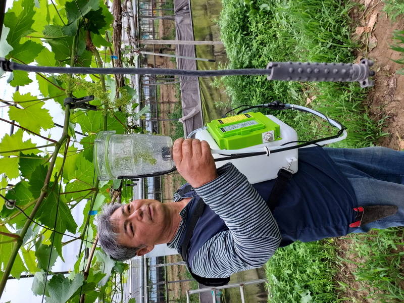 이러한 물량을 맞추기 위해서는 수출규격품 생산을 위한 무핵과 처리기술이 필요한 시점이었다. 원예연구과 소득경영팀 이철휘 박사는 “포도수출 규격품 생산을 위해서는 제때 무핵과 처리가 매우 중요하다”며 “이번에 공동개발 된 전동분무기를 활용하면 적기에 많은 면적을 처리할 수 있다”고 말했다.